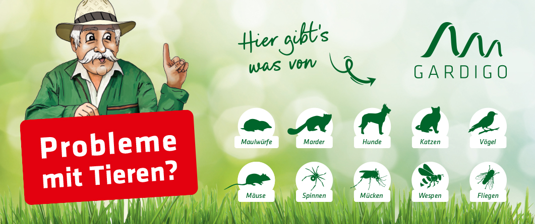 Die Produkte von Gardigo schaffen es mittels verschiedener Methoden Mücken, Hunde, Katzen, Marder, Vögel, Maulwürfe u.v.m. fern zu halten.